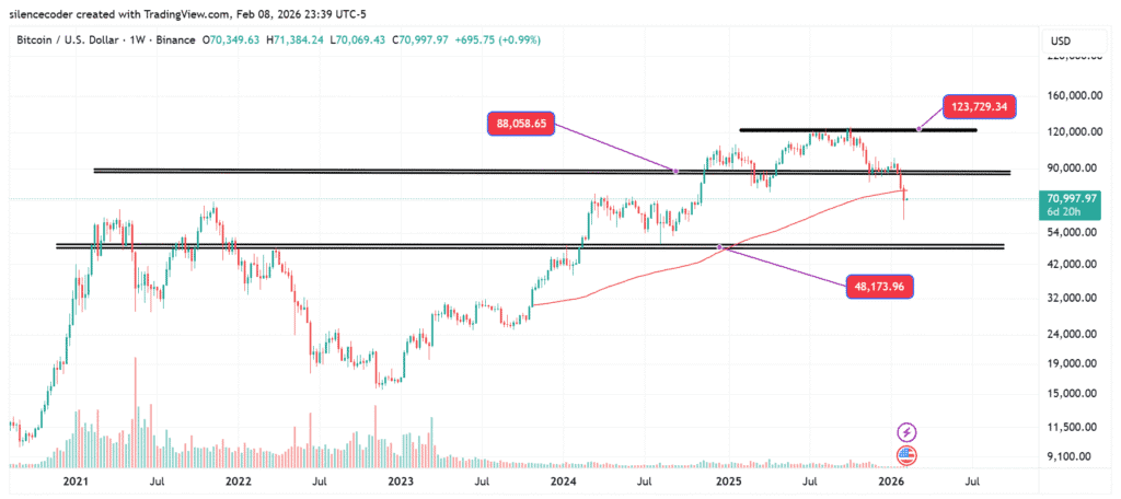 Had Bitcoin consolidated above 100,000, even a 20% pullback would have represented a normal and healthy correction. Instead, the level acted as a powerful psychological barrier. Once price broke below it and failed to hold during a retest, deeper downside became increasingly probable.